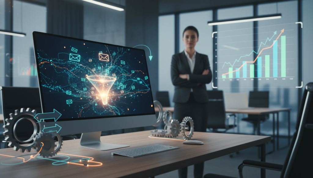 El marketing automation es un conjunto de herramientas digitales que automatizan tareas repetitivas de marketing, como enviar correos personalizados, segmentar audiencias y rastrear interacciones, todo basado en el comportamiento real de tus clientes. No es solo «envío masivo de emails»; es un sistema inteligente que actúa 24/7, personalizando experiencias a escala.